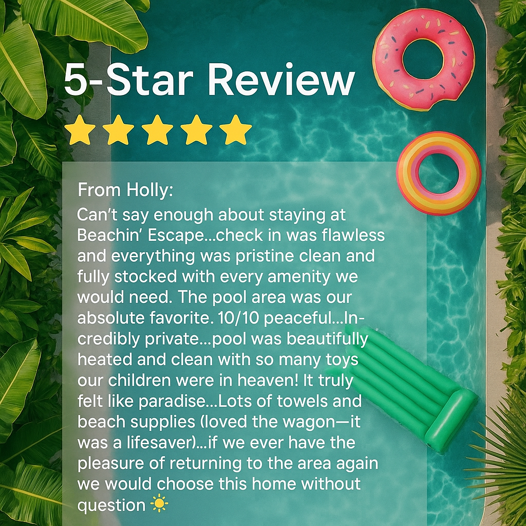 Create unforgettable family memories at Beachin' Escape, where relaxation, adventure, and togetherness come naturally. Secure your spot now for the ultimate beach vacation!